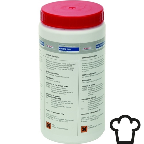 Houd je Hobart vaatwasmachine in topconditie met de Hobart Hygiëne Tabletten. Speciaal ontwikkeld voor het hygiëneprogramma van Hobart vaatwasmachines, bieden deze tabletten een effectieve oplossing voor het reinigen van leidingen, het verwijderen van kalkaanslag en het verlengen van de levensduur van je machine.